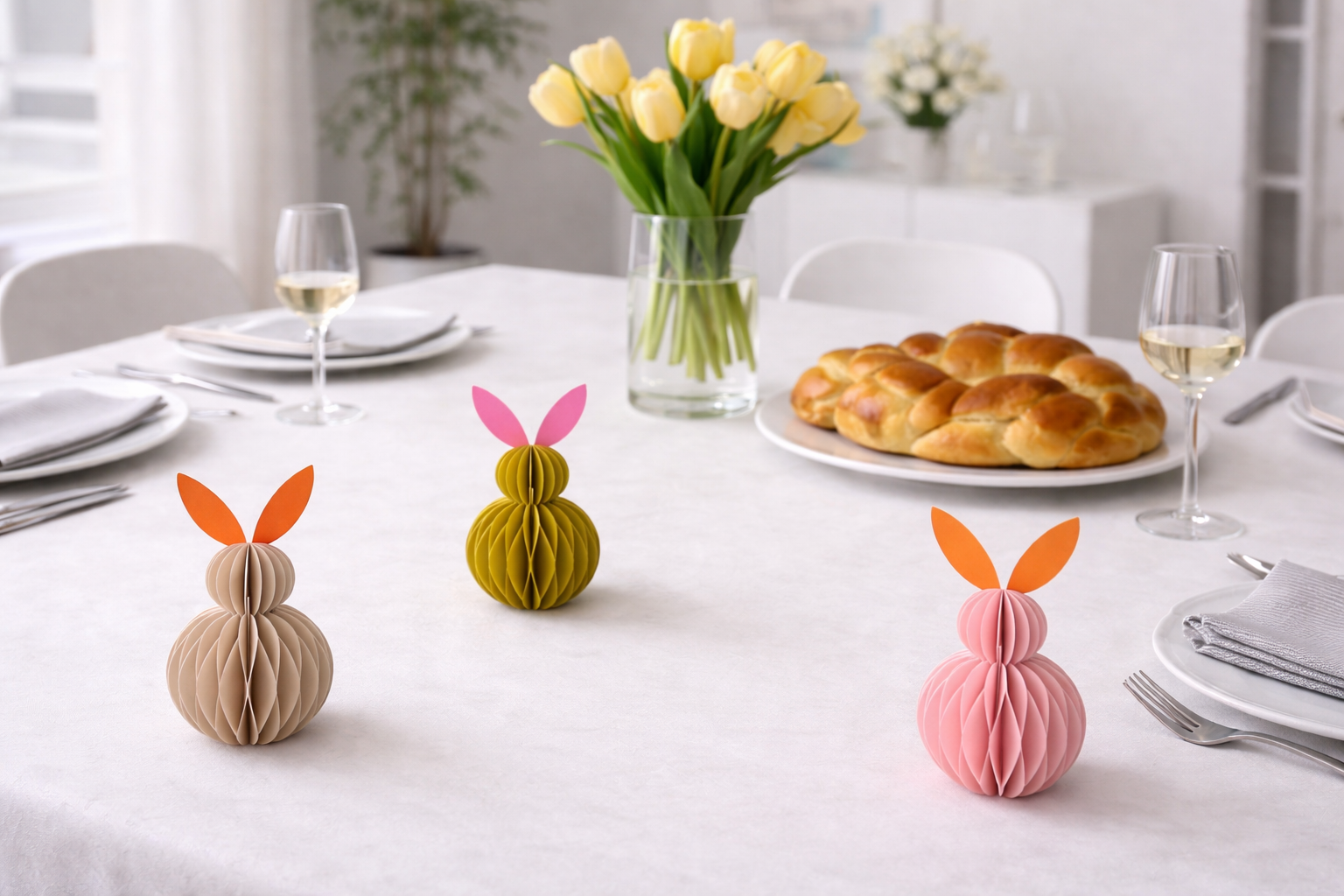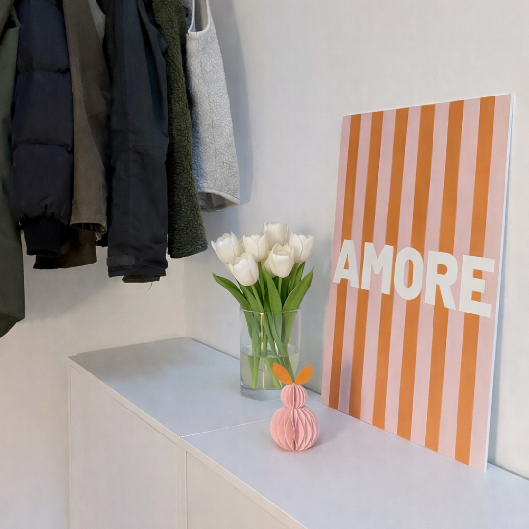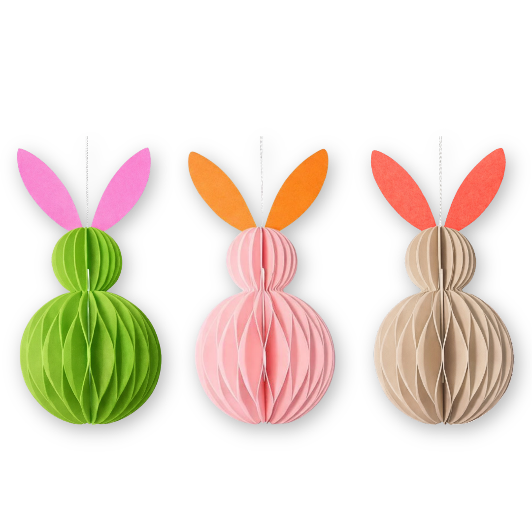 Bezaubernde Papierhäschen bringen Osterfreude in das Zuhause. Mit einer Höhe von 15cm und in wunderschönen Farbkombinationen lassen sich diese niedlichen Häschen vielseitig einsetzen: aufhängen an zarter Baumwollschnur oder einfach hinstellen. Der praktische Klettverschluss hält sie zusammen, so dass sie nach den Ostertagen auch flach verstaut werden können. Die 5er Verkaufseinheit bietet die Möglichkeit die Farbkombinationen anzubieten und zu kombinieren. Ein charmantes Dekoelement, das Osternester, Regale und Tische in Frühjahrslaune versetzt.