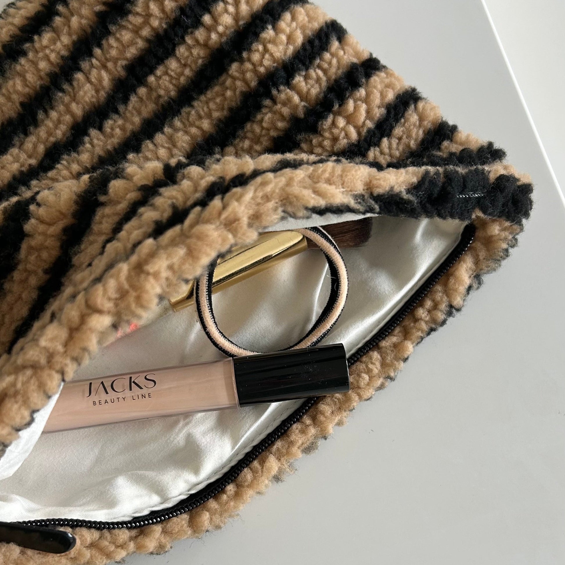 Diese Teddy Tasche aus weichem Teddystoff begleitet dich stilvoll und praktisch im Alltag. Sie bietet ausreichend Platz für Kosmetik, wichtige Arzneimittel oder dein Studienzubehör. Die attraktiven Farbkombinationen machen sie zum perfekten Begleiter für unterwegs – so hast du deine liebsten Dinge immer griffbereit und gut geschützt.